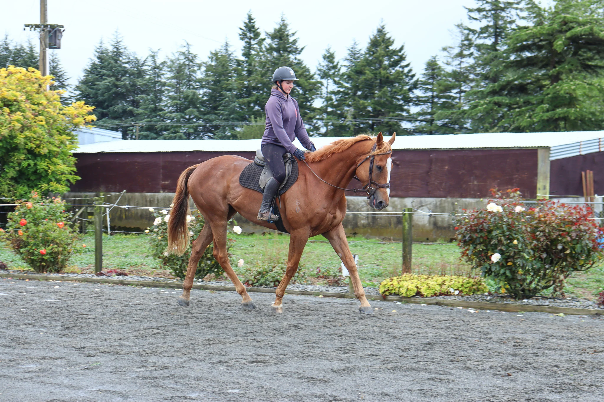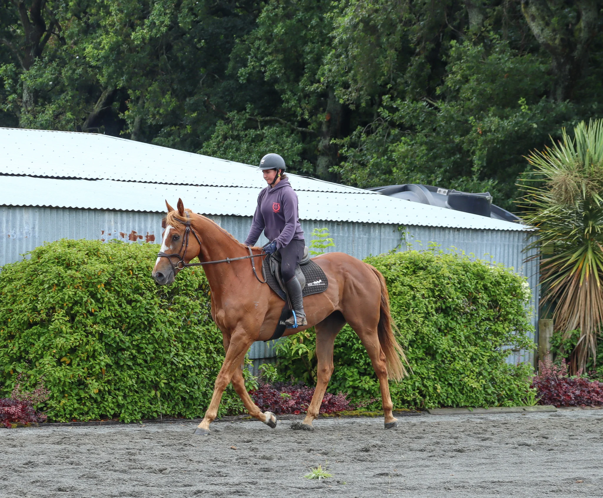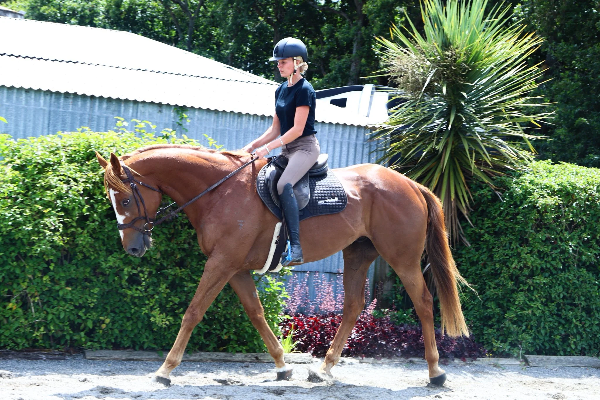 Cody is a scopey, athletic 17hh gelding who is really starting to show his potential as he transitions from racehorse to sport horse. Still growing into his big frame, he’s proving to be a smart, willing horse who improves with every ride. Under saddle he’s settling well, happy to cruise around, showing a lovely natural balance and beginning to understand contact and work through himself. Despite having a good engine, he’s never hot or racey, happily comes back down the gears, and remains rideable in new environments.